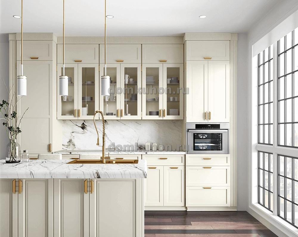 Представляем кухню "Бакарди" — истинное воплощение элегантности и современной роскоши. Сочетание кремовых шкафов с золотой фурнитурой и мраморных столешниц создает великолепный дизайн, который станет жемчужиной вашего дома. Светлые тона и чистые линии придают этой кухне воздушность и свет, а стеклянные шкафчики добавляют изящества. Эта кухня — идеальное место для современных гурманов, ценящих красоту и функциональность в каждой детали.